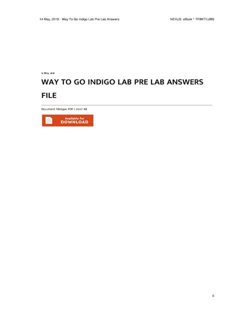 Read WAY TO GO INDIGO LAB PRE LAB ANSWERS PDF